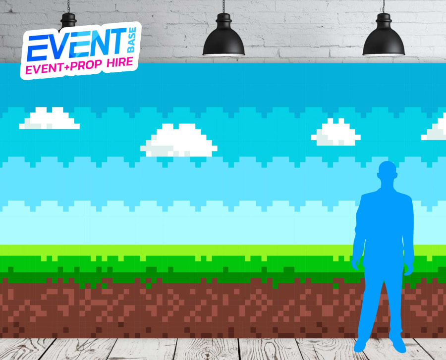 Description: Create a retro computer game effect at your event venue with our Pixel Blue Sky & Green Landscape scene at your event by hiring one of our Comic Blue Sky with Clouds Wall backdrops / scene setters. This is just like something straight out of a Retro Arcade Game such s Super Mario or event modern day Minecraft! Cut down on decorating costs and create a much better effect with one of these products. These large screens are self supporting and are usually placed as wall coverings or self-standing units to form a realistic themed effect. Our backdrops are digitally printed on high anti-wrinkle fabric material providing a flawless effect and are installed on a Pipe & Drape framework (included). They are mainly used to form a Backdrop to Event Displays, for Photo Opportunities, Parties, Corporate Events & to decorate rooms, banquet halls. Custom designs also available, call us to discuss your requirements.