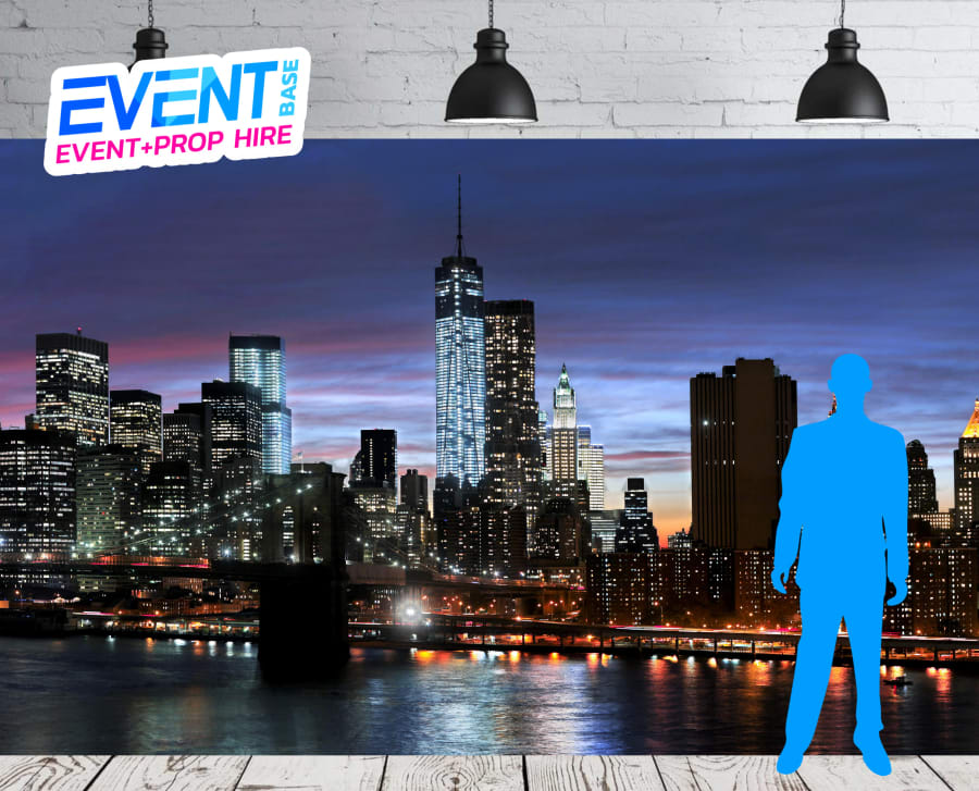Description: Create a Cityscape at Night scene at your event by hiring one of our New Your City Wall backdrops / scene setters. Cut down on decorating costs and create a much better effect with one of these products. These large screens are self supporting and are usually placed as wall coverings or self-standing units to form a realistic themed effect. Our backdrops are digitally printed on high anti-wrinkle fabric material providing a flawless effect and are installed on a Pipe & Drape framework (included). They are mainly used to form a Backdrop to Event Displays, for Photo Opportunities, Parties, Corporate Events & to decorate rooms, banquet halls. Custom designs also available, call us to discuss your requirements.