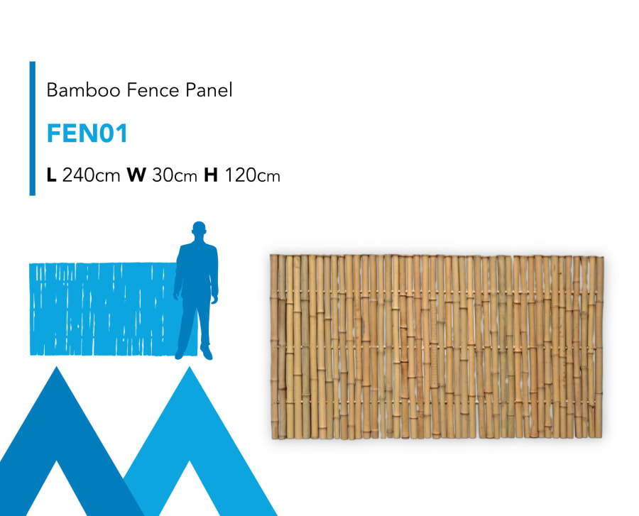 Description: Our Bamboo Fence Panels are very versatile and can serve a multitude of uses at a variety of event themes. Each panel measures 4ft High X 8ft Wide.