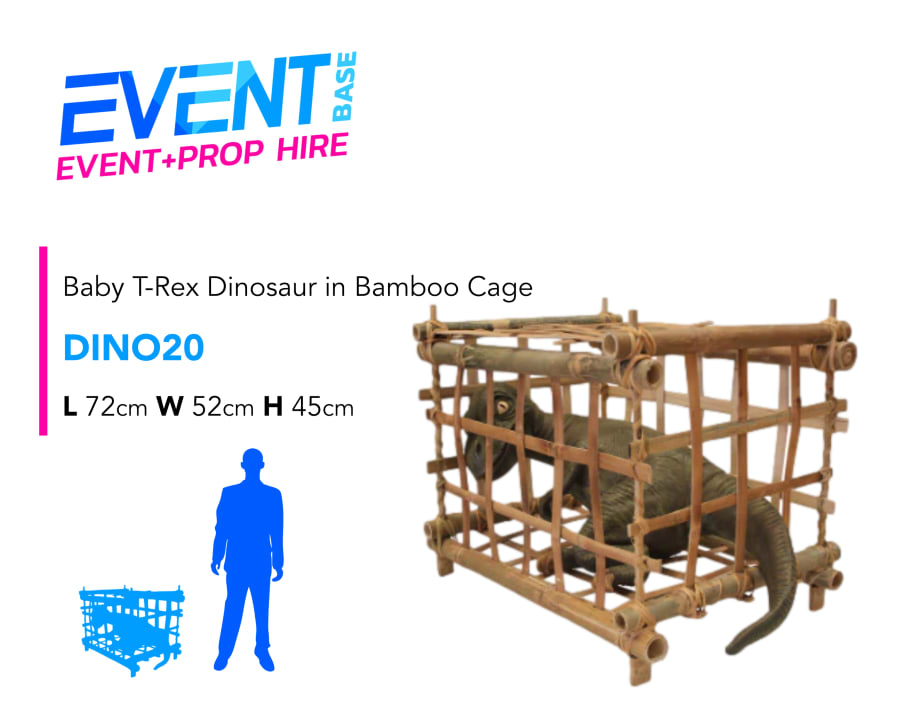 Description: We're not sure if Dinosaurs can be considered cute... but if so, this prop certainly is. A baby T-Rex peeping through a Bamboo style cage. Looks great as part of any Lost World, Jurassic Park, Prehistoric, Night at the Museum or any other Dino Themed Event Display.Contact our team today to get planning your next event!