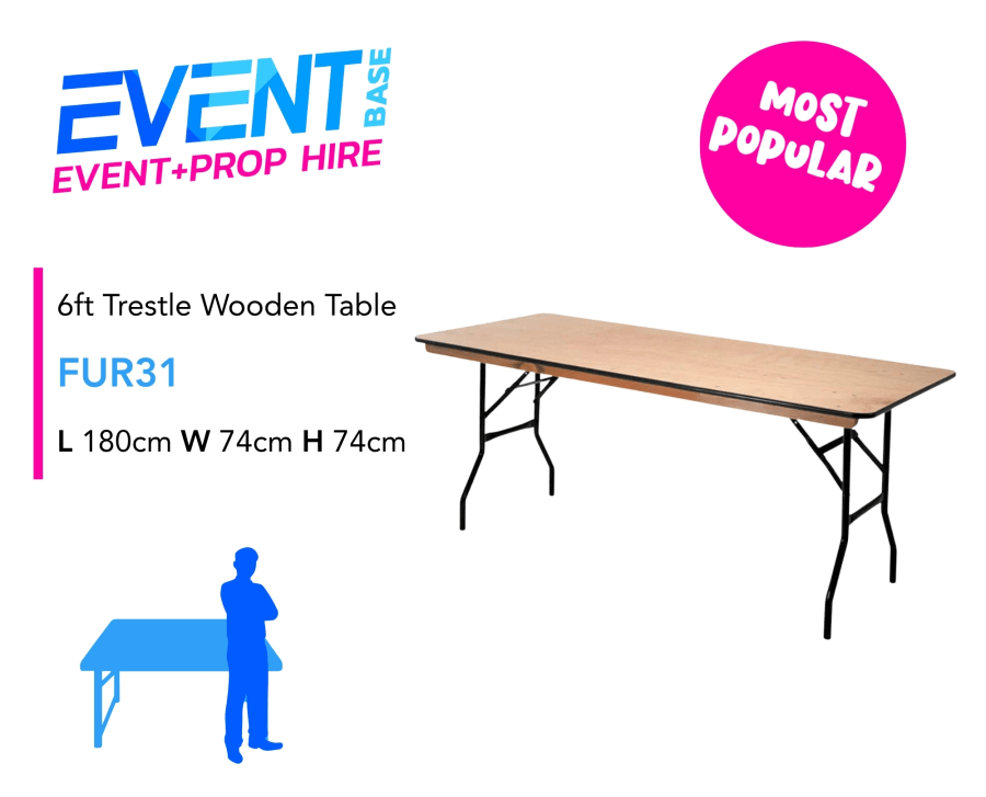 6ft Wooden Trestle Tables for Hire | Event Table Hire Ireland