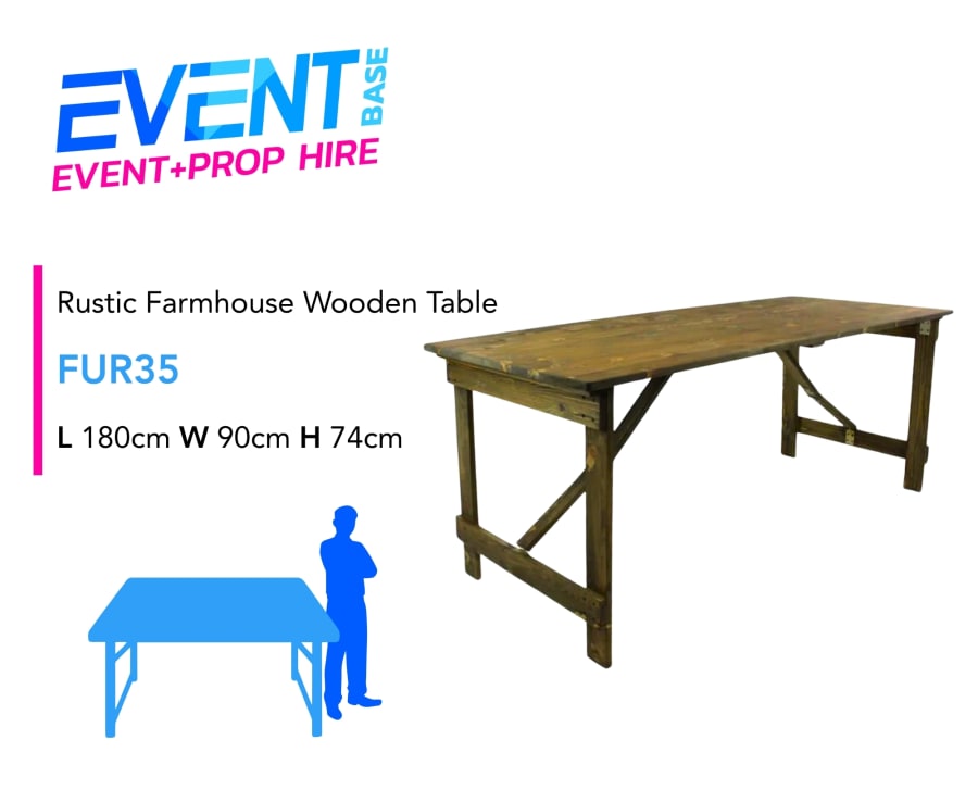 6ft x 3ft Rustic Farmhouse Table for Hire | Wooden Wedding Table Hire Ireland