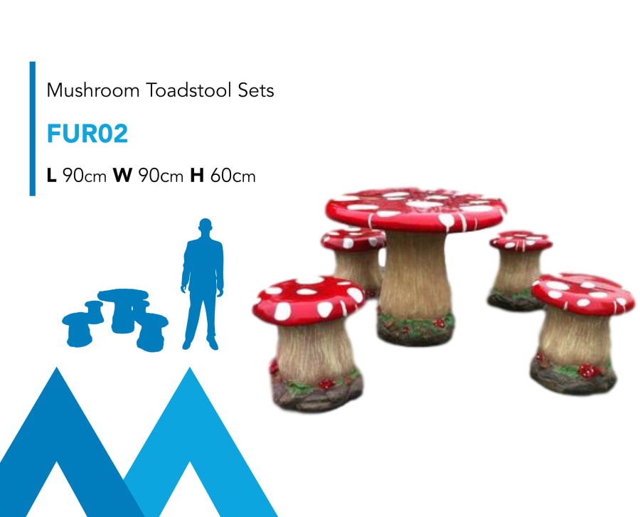 Description: Introducing our fun kids Mushroom Tables red and white with a set of four Toadstool Stools / Chairs for Hire. These indoor or outdoor furniture hire sets are really cute, are loved by kids and admired by adults! The look great as part of a Mad Hatter, Forest, Teddy Bears Picnic, Alice in Wonderland, Fairytale or Garden Party theme! Contact us for further information. Long and short-term hire available. Check out our range of other fun event furnishings, props and event essentials. EventBase are your one stop shop for all your event and party needs!