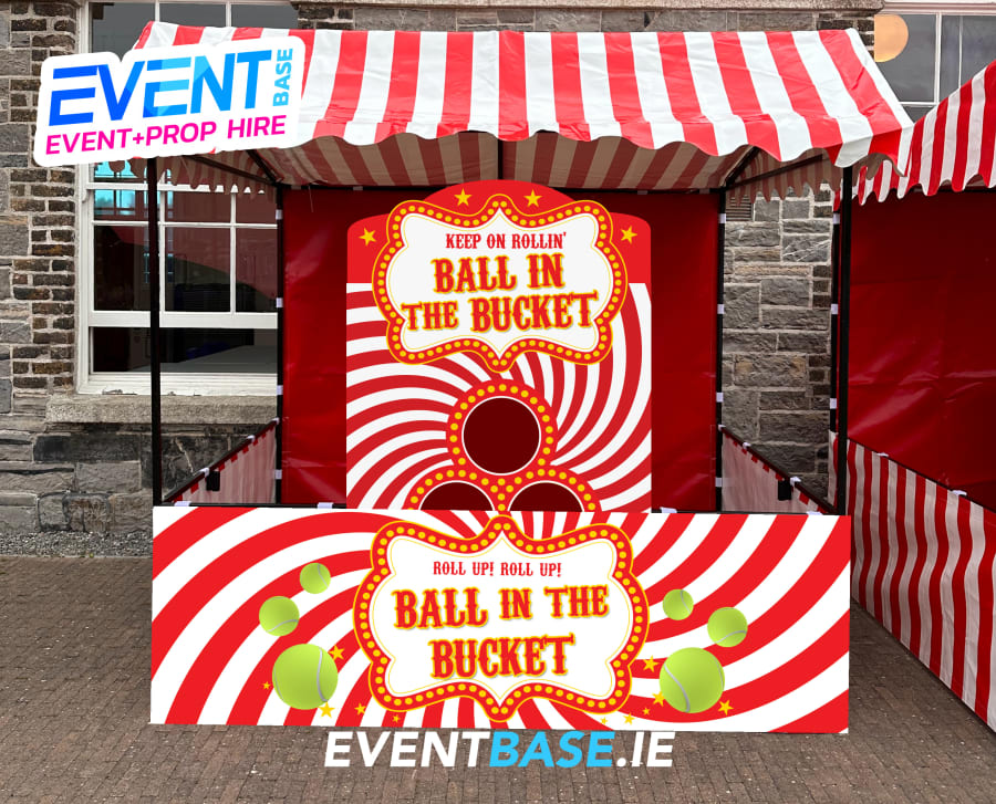 Bring the thrill of the fairground to your event with our fun and challenging Ball in the Bucket Carnival Game Hire! Housed in our bold and beautiful red and white striped carnival stall, this classic side stall game is a must-have for any party, fun day, or promotional event.