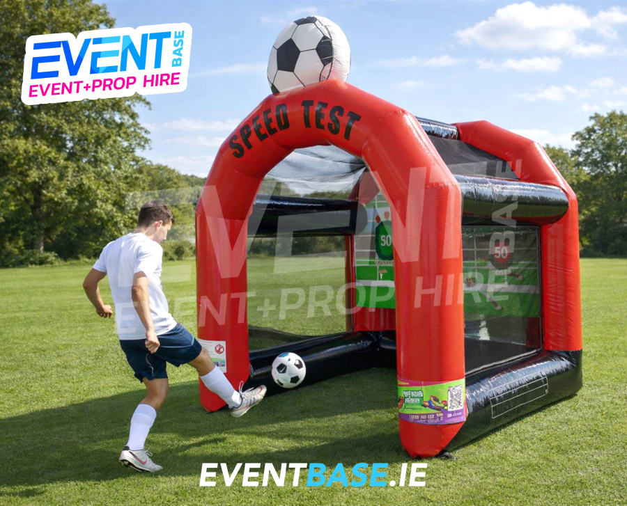 This inflatable football radar game for hire in Ireland measures the speed of every shot, so players can compete to see who has the fastest strike on the day ๐