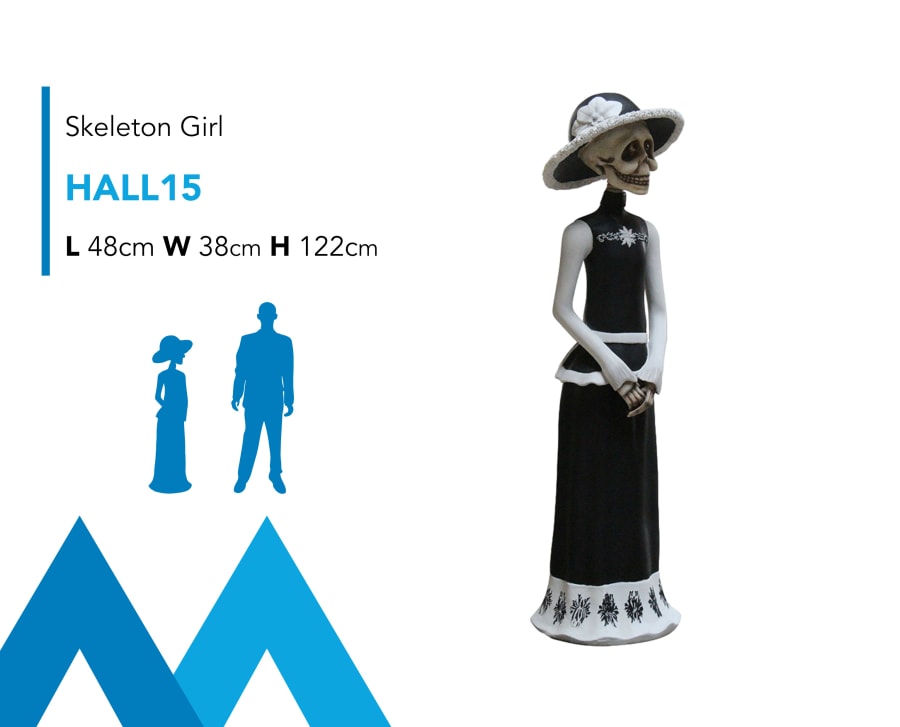 Description: Introducing our Skeleton Girl event prop model for hire. This prop model for hire is perfect for any Pumpkin Patch Party, Halloween Party, House of Horrors, Ghost & Ghouls Theme, Haunted House, Corporate Halloween Party & many more... We have the widest selection of Spooky Halloween & Haunted Horror Themed Event Hire Props in Ireland. Contact our team today to get planning your next event! Don't forget to take a look at our other Halloween & Horror Themed Event props available to rent including, Ghosts, Goblins, Ghouls, Vampires, Death, Grim Reaper, Soul Taker, Witch, Wizard, Warlock, Grave Tomb Stones, Coffins, Zombies, Wizard or Oz, Skeletons, Mummy, & much more...