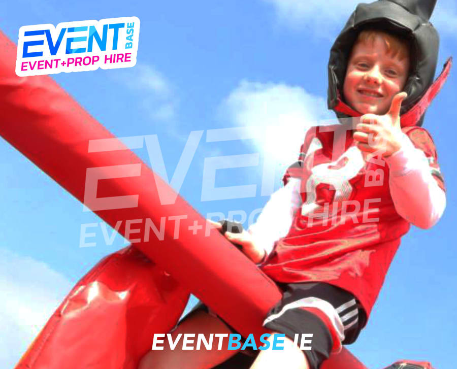 Description: Measuring 15ft(L) x 15ft(W) x 8ft(H), Pillow wars is the 'friendly' way to have a fight with your friends, family or colleagues. The aim is to knock your friend (or enemy) off the pole. Best of three rounds wins! A game for kids (6+) and all adults that have not really grown up!!This is unit is a fun spectacle & a guaranteed crowd puller. Ideal for Family Days, Fun Days, Fairs, Barbecues, Corporate Events, Team Building Exercises and more.Suitable for indoor or outdoor use. Comes supplied with helmets and bashing pillows.