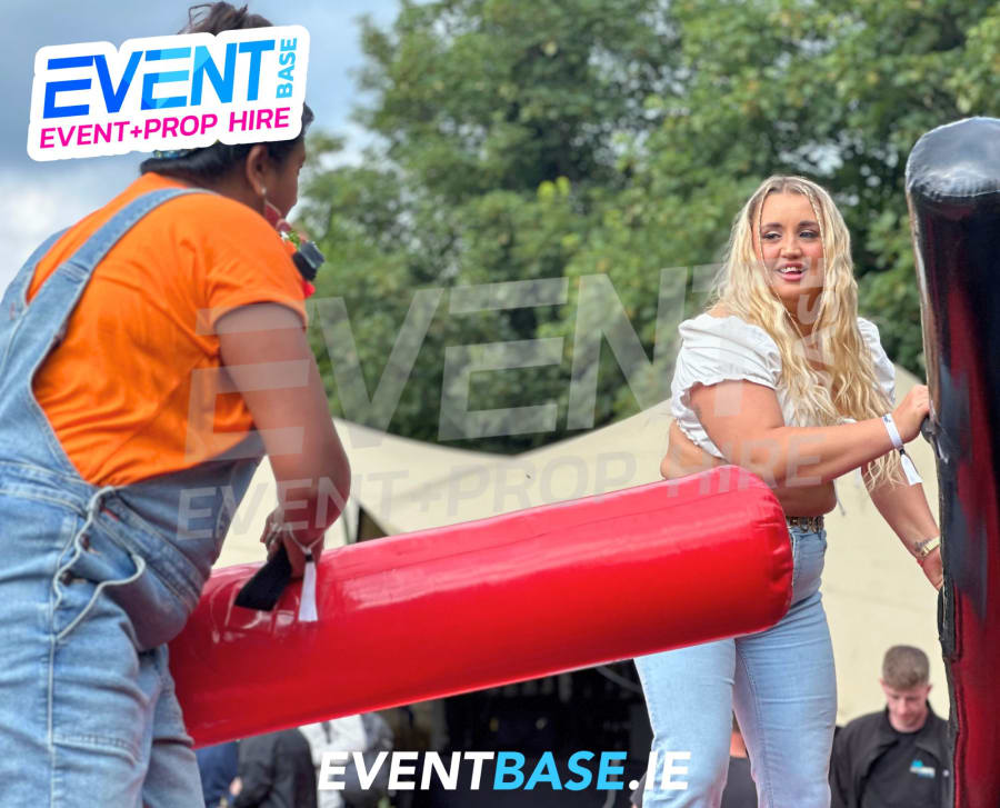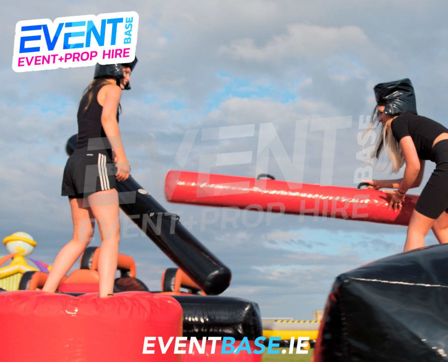 Unleash your inner warrior! 💥 The Inflatable Gladiator Jousting Duel is the ultimate two-player inflatable game hire in Ireland – perfect for parties, school events, festivals, corporate fun days and team-building events. Inspired by the legendary Gladiators TV show, this adrenaline-pumping game sees two contenders battle it out on raised podiums using padded pugil sticks – all set atop a giant inflatable arena!