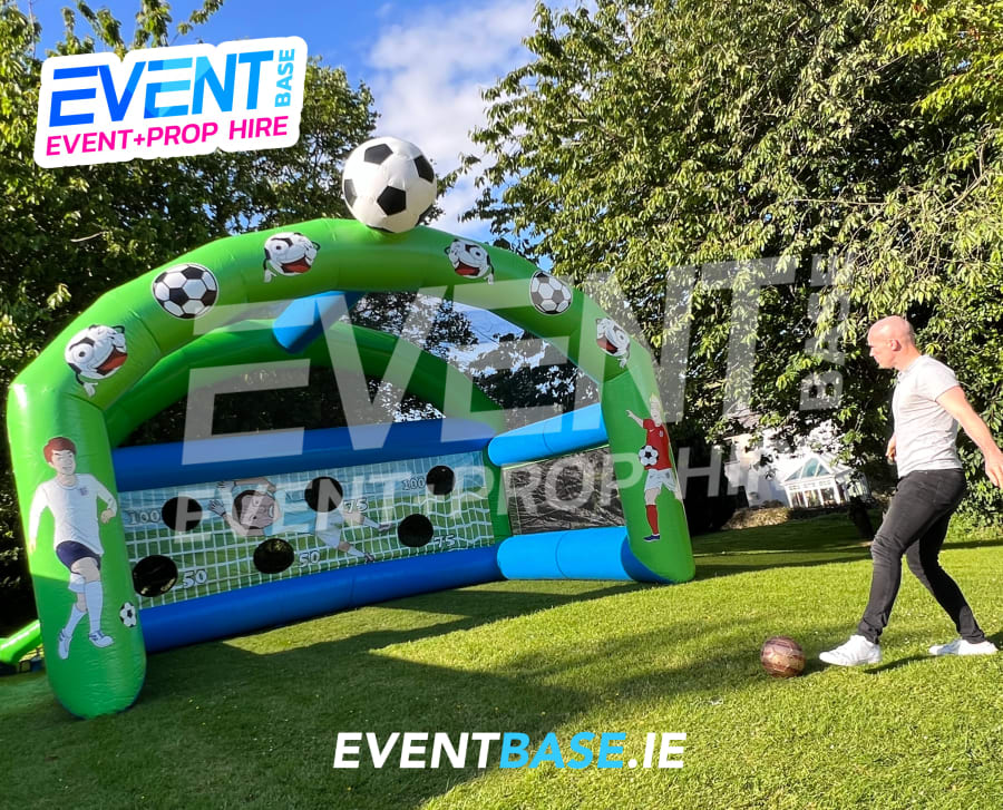 Description: 22ft(L) x 18ft(W) x 20ft(H) Football Penalty Shootout Game. This is an incredible product which can become the centrepiece of your event. Crowds of people can gather around and join in the fun of the Penalty Shoutout Challenge, suitable for all age groups and fitness levels. Simply try to kick or throw the balls into the targets to gain points or appoint a goalkeeper to make the game even more challenging. Great Fun and can be played in a variety of ways... you make your own rules!