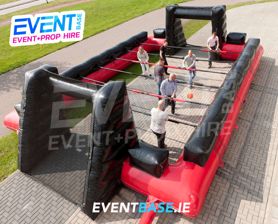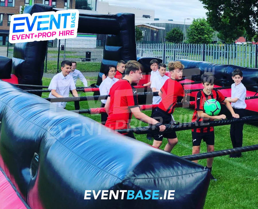 Have friends that love football? Or maybe need a group of people to work together in unison to win the trophy! Look no further than the Human Table football hire. If things take a turn for the worse and they can't work together as a team, it’s great craic and can become incredibly competitive. Our Human Football Table definitely on of the most fun inflatable games we have on our hire stock. Everyone loves playing with a football table so why not try our human football table, where you are attached to poles and have a very limited space to play football, just like the retro table game, on a much larger human scale! Giving Lilliput or 'Honey I shrunk the Kids' vibes.