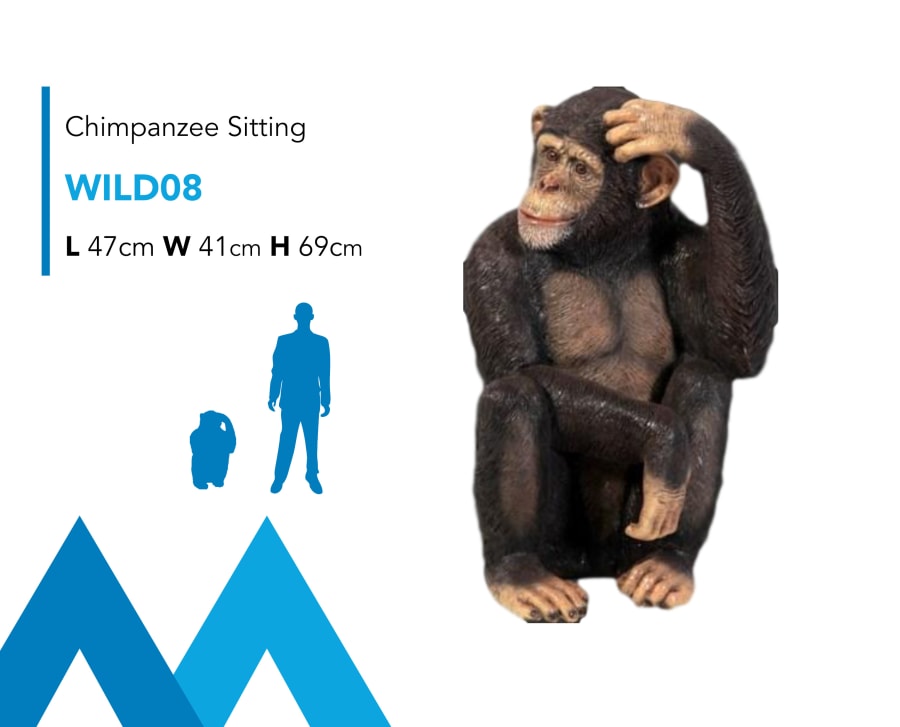 Description: Introducing our Chimpanzee Sitting Prop Hire Event model for hire. This prop model for hire is perfect for any Jungle, Lion King, Safari, Tropical Rainforest, Wild Animals & many more... We have the widest selection of Jungle Safari Themed Event Hire Props in Ireland. Contact our team today to get planning your next event! Don't forget to take a look at our other Wild Animal, Jungle & Safari Themed Event props available to rent including, Elephants, Tigers, Giraffes, Lions, Monkeys, Snakes, Hippos, Rhinos, Flamingos, Parrots, Cheetah & much more...