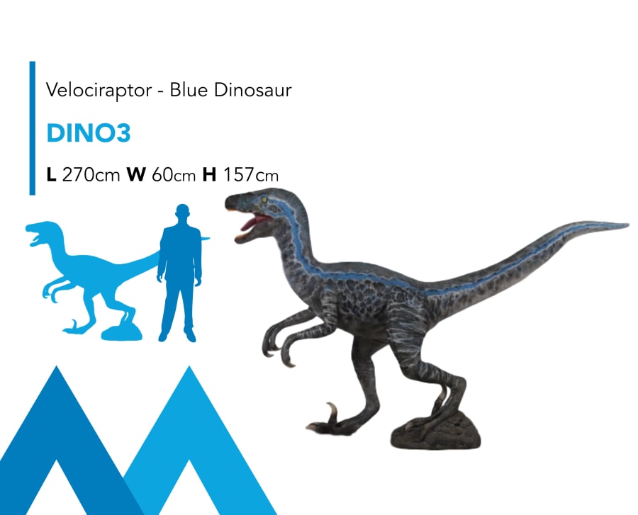 Description: Bring a little RAWR to your next event with these cool guys...Entering is Blue Velociraptor Dinosaur Event Prop model for hire.