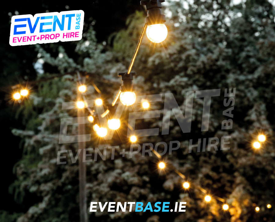 Featuring E27 globe bulbs, each emitting a beautiful warm white glow, these festoon lights are safe for use indoors and outdoors (IP55 rated), so you can string them up for a Summer BBQ, Christmas Market, Corporate Party, Outdoor Cinema, Circus or Carnival Theme or simply add some industrial chic to your event space. Mains operated, these string lights are 1000cm long, giving you plenty of length to fill any space with soft illuminations.