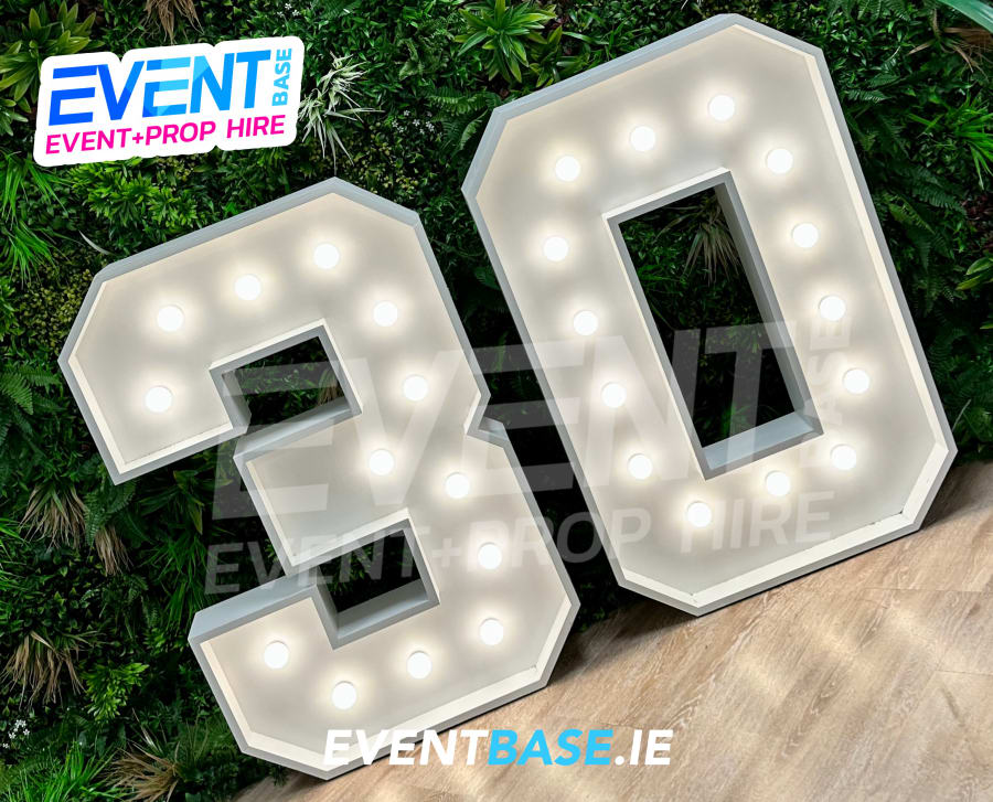 At EventBase, we build our LED Numbers in-house meaning anything is possible! Any Letter or Number Combination, any size or even any colour for an additional fee! Our stock Numbers and Letters are 4ft High, in White with Warm White LED's. We supply our 4ft (most popular size) light up letters, numbers & signs for all types of events. Suitable for Corporate 'Name in Lights', Product Launches & Openings, Wedding Signs to light up letters, numbers and signs for corporate events and parties, we provide the perfect illuminating marquee letter or number sign solutions for your event, whatever the theme! We also offer Euro Symbols & Hashtags for hire to complete your set-up.