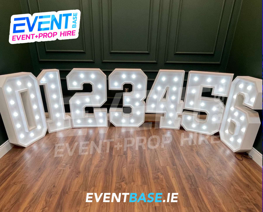 Our 1.2m high light up letters, numbers and signs are the perfect addition to a wedding, party, corporate or hybrid event. We are constantly adding to our collection which is the largest in Ireland, so if you're looking for a bespoke solution, please contact us and we will be happy to discuss your ideas.