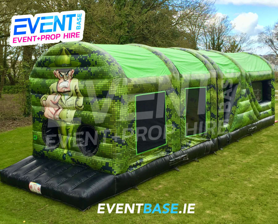 Description: 45ft(L) x 15ft(W) x 12ft(H) Dual Lane Army themed Obstacle Course. Are you ready to take on this military bootcamp style challenge? The "Army Avenger" is a fully enclosed, camouflage printed obstacle course with a series of fun challenges. Suitable for any anyone over 5years. Consists of climbing, crawling, squeeze through and sliding areas. Really impressive and favoured by kids of all ages. This is anticipated to be our most popular Obstacle Course this year. Some kids like to call this Obstacle Course Minecraft due to the pixel style camouflage print.
