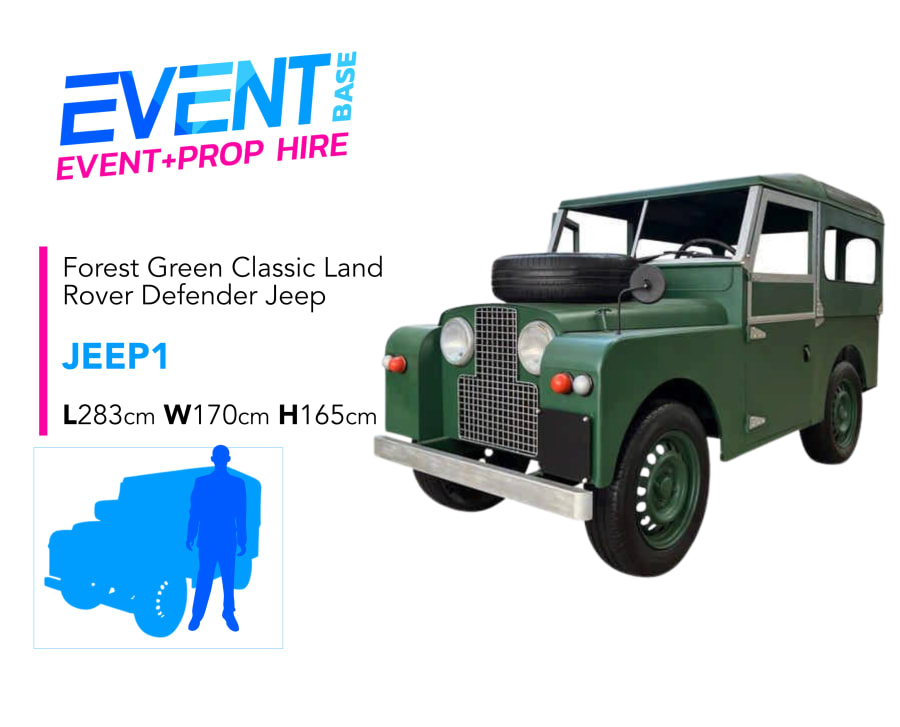 *Make your next event unforgettable — hire the Land Rover Defender Jeep Prop today and let your guests drive into the adventure!