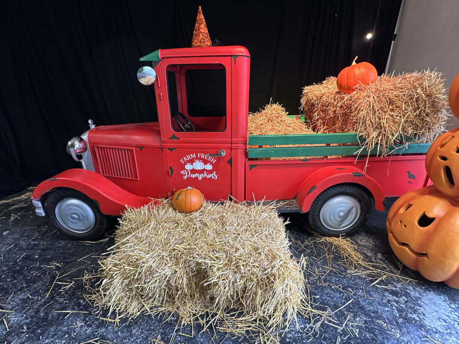 Guests can sit inside the cab or pose beside the truck for an unforgettable photo opportunity, making it a guaranteed crowd-pleaser at venues, shopping centres, festivals, or themed installations. Whether styled as a Christmas Tree Farm scene, Pumpkin Patch, Vintage Americana, or Rustic Wedding backdrop, this versatile prop adds authentic charm and cinematic flair.