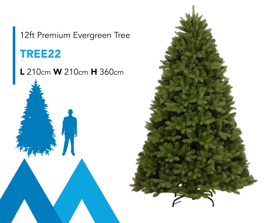 Description: Introducing our 12ft Evergreen Tree Event Prop for hire. Our Evergreen Artificial Christmas Trees are a hugely popular Festive Event Hire product with literally 100's in stock in different shapes and sizes. Our Evergreen Christmas Trees look great to create a natural looking alpine display or you may choose to add lights and decorations like a Traditional Christmas Tree. Our trees are quickly and easily set up at your venue. You can choose to self install or have our crew install as part of your event hire package. Fully decorated trees in a choice of colour options available to hire. Speak to a member of our EventBase team to discuss delivery, installation and collection pricing. As with all our event hire products, these trees are available on a daily, weekly, monthly or seasonal basis, the longer you hire, the lower the average day rate!