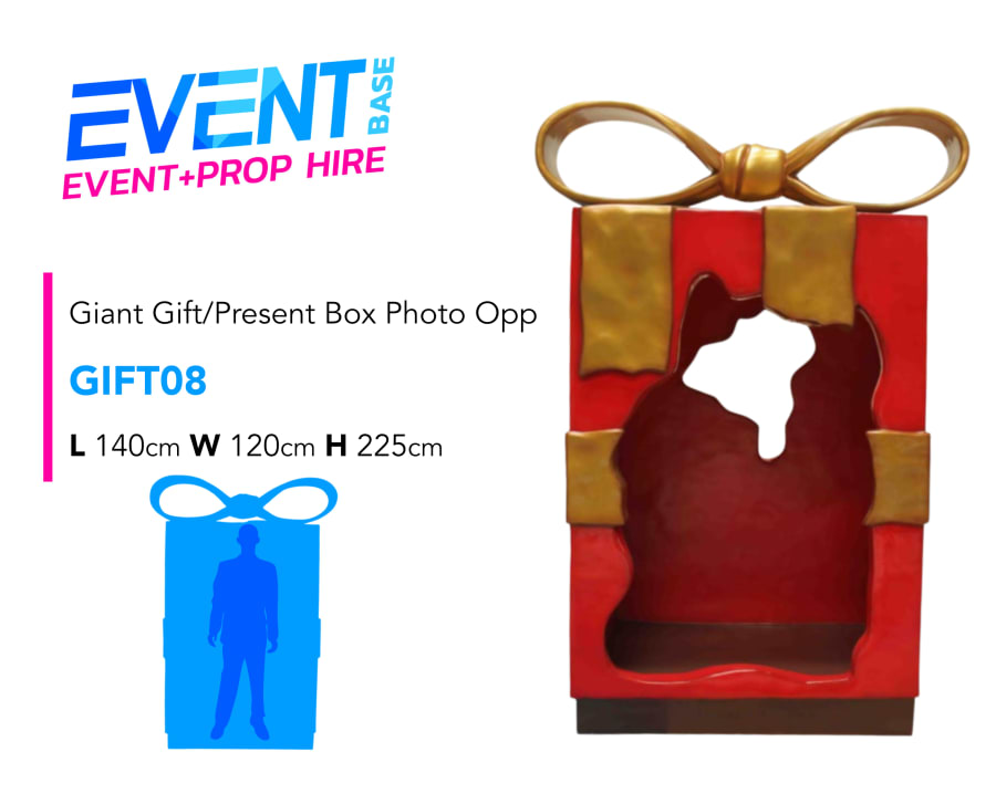 Make a show-stopping statement this festive season with our Giant Present Reveal Photo-Op, a spectacular life-size resin prop designed to wow your guests and capture unforgettable moments.