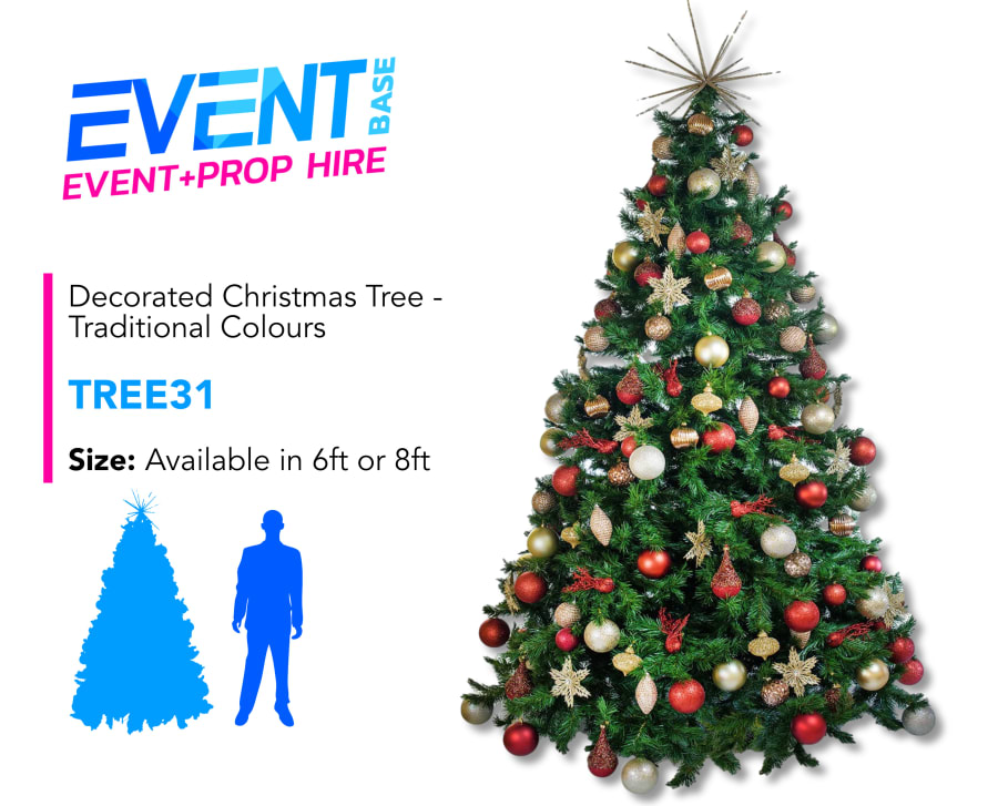 • Hire of a high quality commercial grade flame retardant 'Plush Artificial Christmas Trees' with 'Traditional' themed decorations in a choice of colours