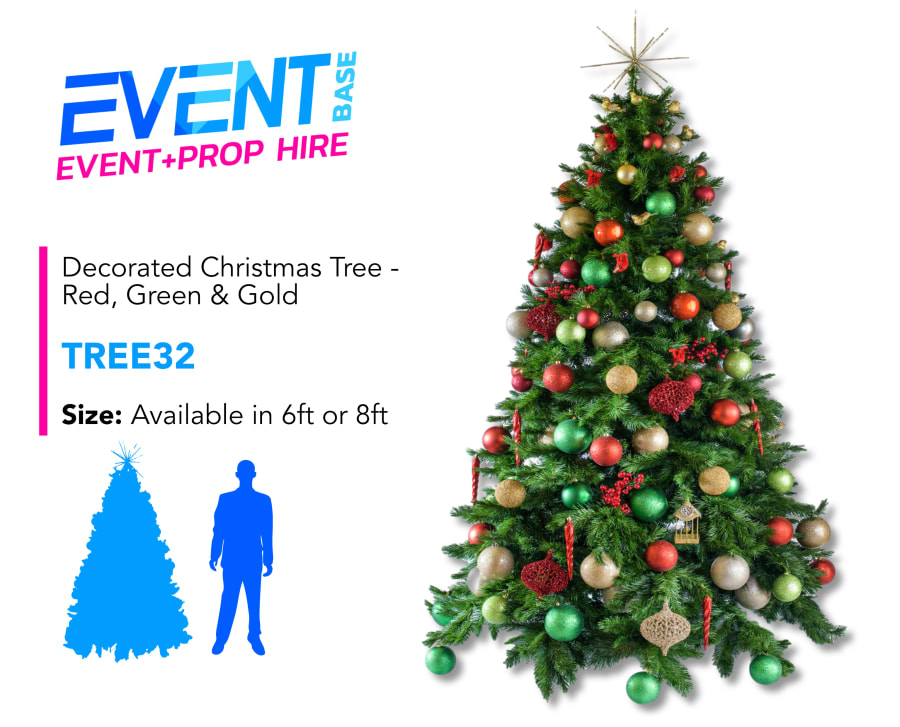 Bring a plush fully decorated Christmas Tree to your Party Event without the hassle of assembling on-site, available as standard in 6ft or 8ft heights, with custom sizes available by special order. Christmas in style with our Traditional decorated Christmas tree. Our Traditional decorated Christmas tree captures the timeless appeal of Christmas both now and days gone by. The vibrant red and green decorations are accompanied by the sparkle of gold. We expertly place the baubles and decorations, and top the Christmas tree with our unique gold star to provide the ‘wow’ factor.