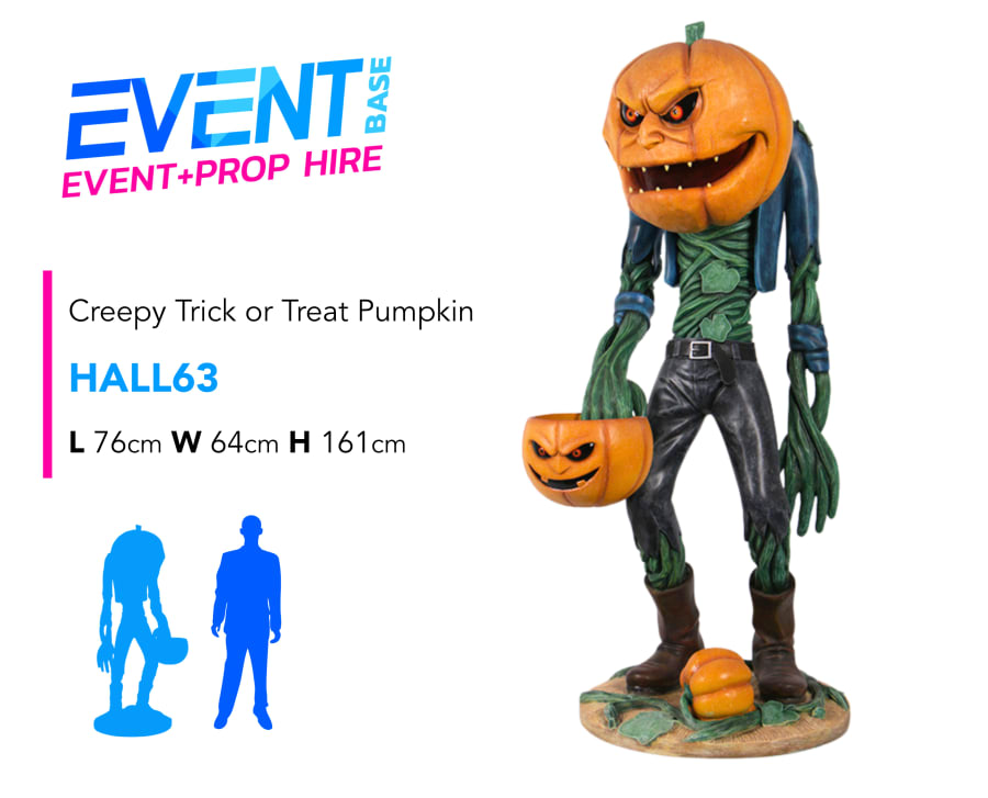 Description: Towering with terror and twisted charm, this tall horror figure commands attention with its grotesque pumpkin head—carved into a sinister sneer that dares you to come closer. In one gnarled hand it holds a sliced-open pumpkin, ready to tempt brave souls with treats… or tricks. Crafted in resin with haunting detail, this eerie character is perfect for Halloween displays that needs a bold centrepiece. Creepy, captivating and candy-ready—he’s the nightmare host with the most! Introducing our Freestanding Spooky Halloween Pumpkin Character prop model for hire. This Pumpkin model with a pumpkin head trick or treating bucket is one of our premium prop models! This prop model for hire is perfect for any Pumpkin Patch Party, Halloween Party, House of Horrors, Ghost & Ghouls Theme, Haunted House, Corporate Halloween Party & many more... We have the widest selection of Spooky Halloween & Haunted Horror Themed Event Hire Props in Ireland. Contact our team today to get planning your next event! Don't forget to take a look at our other Halloween & Horror Themed Event props available to rent including, Ghosts, Goblins, Ghouls, Vampires, Death, Grim Reaper, Soul Taker, Witch, Wizard, Warlock, Grave Tomb Stones, Coffins, Zombies, Wizard or Oz, Skeletons, Mummy, & much more...