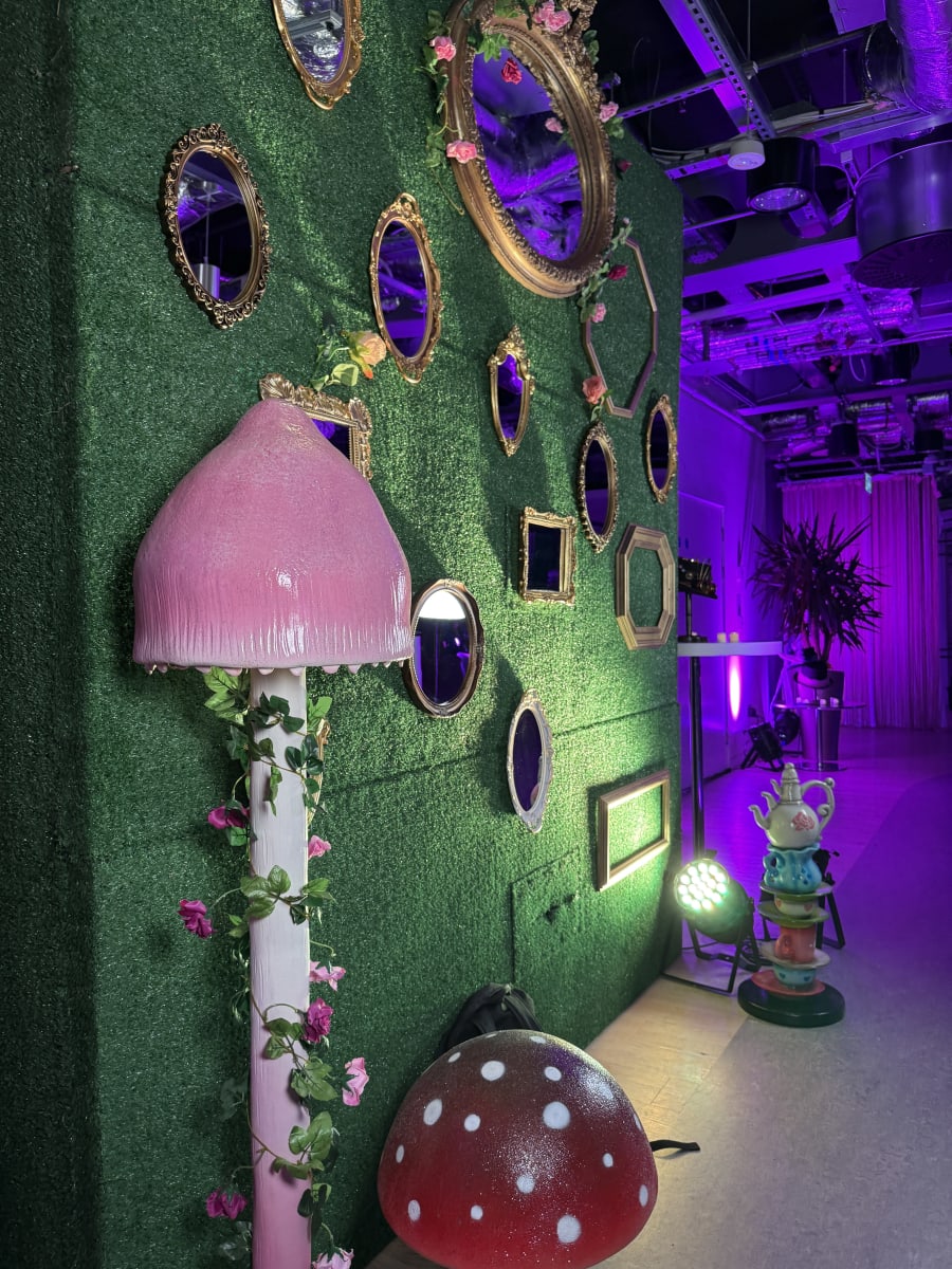 Its soft pink bonnet cap and tall delicate stem give it a magical storybook appearance, making it ideal for creating enchanted forest scenes, fantasy gardens and Alice in Wonderland-style environments. The prop’s vertical design makes it perfect for layering heights within event décor, allowing it to sit behind smaller mushrooms, fairy props or woodland décor to build a rich themed display.