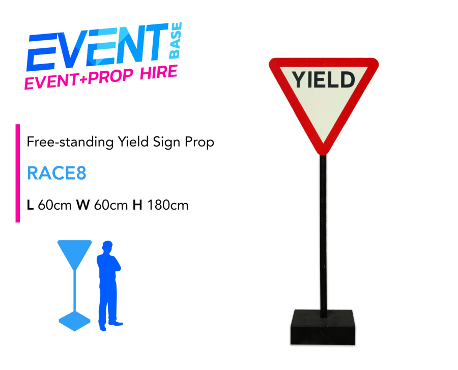 Introduce authentic road signage and structured styling to your event with our Free-Standing Yield Sign / Signpost Prop, available for hire nationwide across Ireland. Featuring the iconic red and white triangular Yield design, this prop is perfect for enhancing Formula One, car racing, urban, and Route 66 themed events, while also doubling as a practical visual marker within your event space.