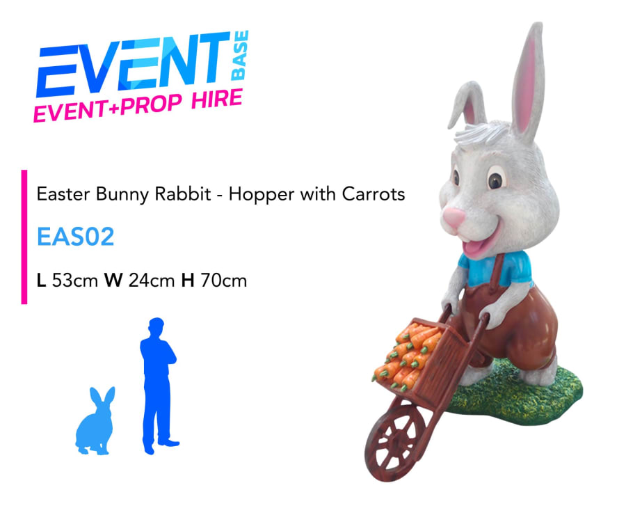Perfect for Easter egg hunts, shopping centres, retail displays, hotels, restaurants, corporate family fun days, photo areas and spring-themed events, Hopper Rabbit works wonderfully as part of a woodland, wildlife or enchanted garden theme. Its compact size makes it ideal for styling entrances, window displays, table features or layered prop scenes alongside larger characters.