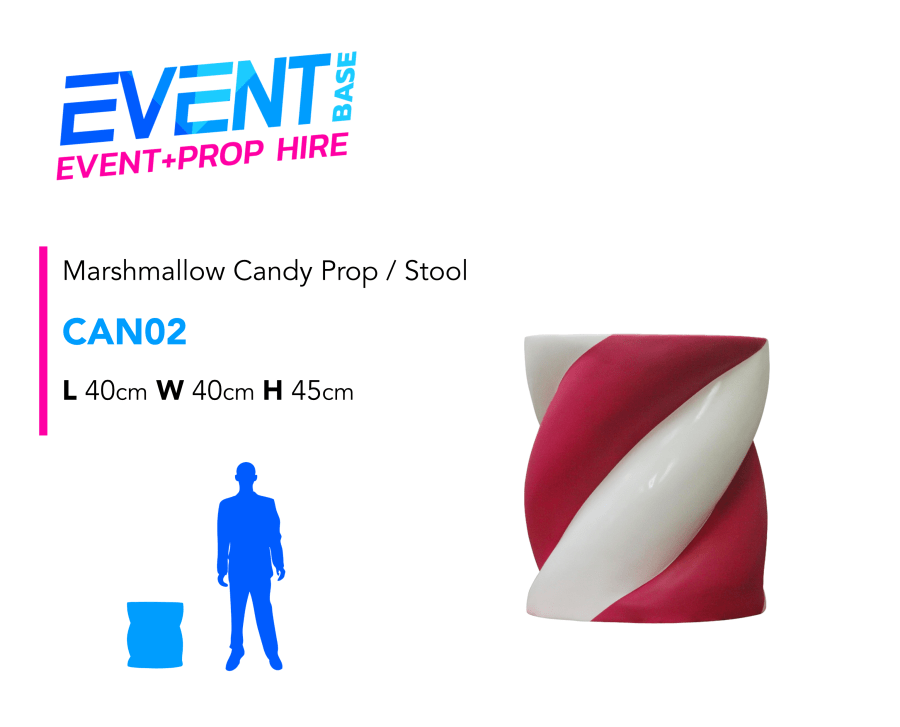 Description: Introducing our Giant Marshmallow Flump Seat in a striking pink and white design. This prop model is suitable as simply a giant decorative sweet or candy prop, or to be used as a seating bench. Also available to hire as a triple mallow. This prop display model is ideal for any Christmas, Santa's Grotto, Candy Land, Charlie & the Chocolate Factory, Willy Wonka, Carnival, Grinch or Giant Sweet theme!