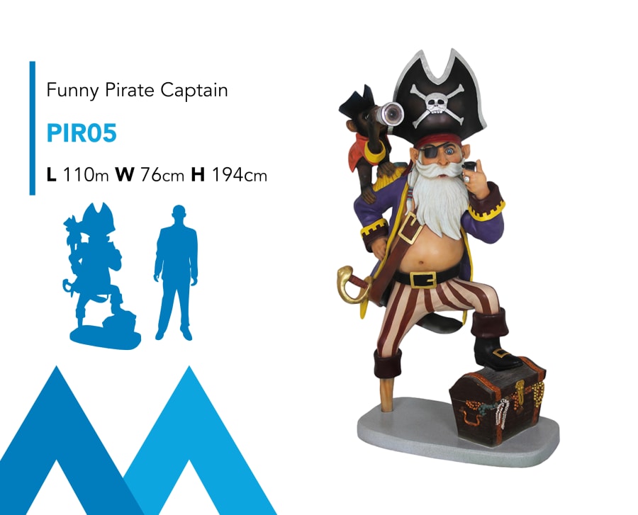 Description: Introducing our Funny Pirate Captain Standing Life-size event prop model for hire. This prop model for hire is perfect for any Seaside, Beach Party, Hawaii, Caribbean, Life's a Beach, Sea & Aqua, Underwater, Ocean, Sealife, Finding Nemo, Pirates, & many more... We have the widest selection of Beach, Underwater & Seaside Themed props in Ireland. Contact our team today to get planning your next event! Don't forget to take a look at our other Beach & Sealife Themed Event props available to rent including, Fish, Sharks, Whales, Crabs, Surfers, Pirates, Photo Opps, Cannons & much more...