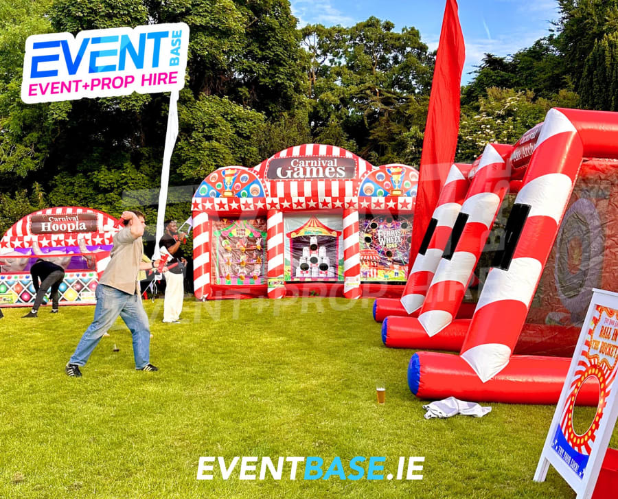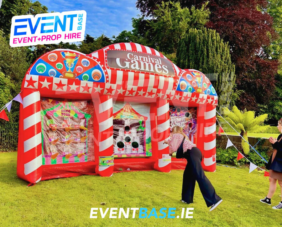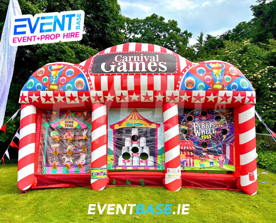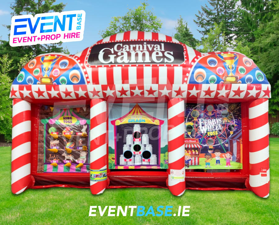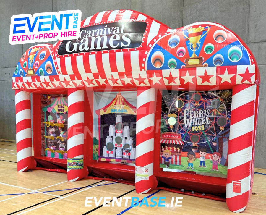Perfect for corporate entertainment, school fairs, community fundraisers, and private parties, this vibrant inflatable stall offers three classic carnival games in one impressive attraction: